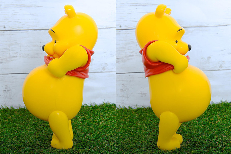 另外,這款「小熊維尼露肚肚」限定復刻版公仔還有一個十分特別的設計,將正在露肚肚的維尼轉過身,大家有發現維尼的屁屁上有著「縫線」,看來是貪吃的維尼吃了太多蜂蜜,都要把肚皮撐破了,肚皮一撐連屁股也快裂開啦~趕快採取「縫線」的緊急措施,維尼要是再不節制一點,要是縫線斷掉,身體裡的棉花可就要跑出來了啦!