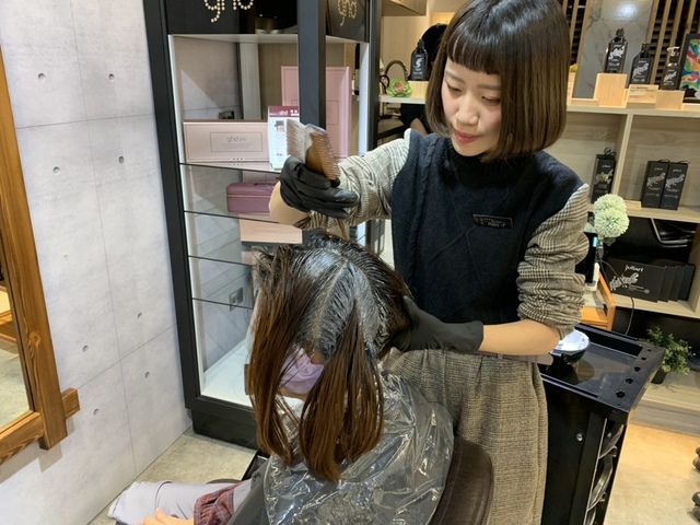 角質淨化完之後,頭皮多了一層保護膜,接著就可以上染劑啦