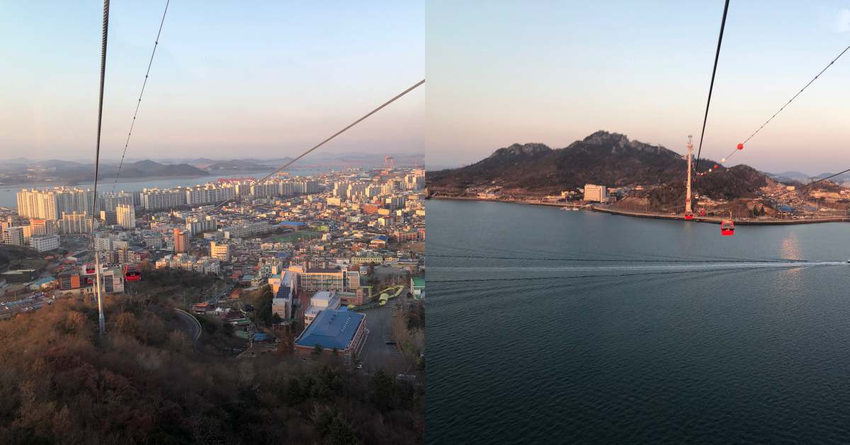 在一天的結束,儂編推薦大家一定要來坐「木浦海上纜車」,這可是世界第二高的纜車,也是韓國目前最長、最高的纜車,來回就得花費40分鐘,懼高症的人一定要克服一下,因為真的太美了~一定要挑夕陽下山的時候來,夕陽美景就在眼前,除了可以看到美麗的海岸線,還能一覽木浦的復古建築,美麗的景色盡收眼底太享受了~