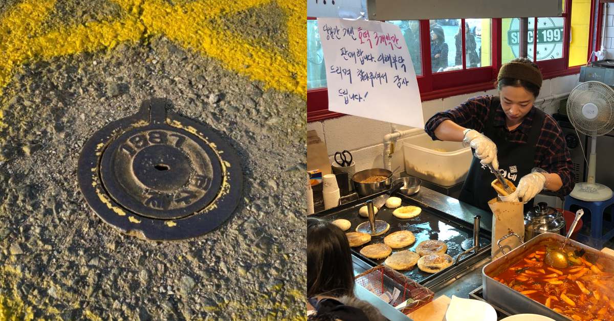 為了足粉絲愛拍的心,連店門口的人孔蓋還特別標注上「1987」!大家拍完美照後也可以到巷口的《妍熙家糖餅》吃個下午茶,但大家要有排隊一個小時以上的心理準備,畢竟這可是上過韓綜《生活的達人》的美食呢(吃過表示心滿意足)~
