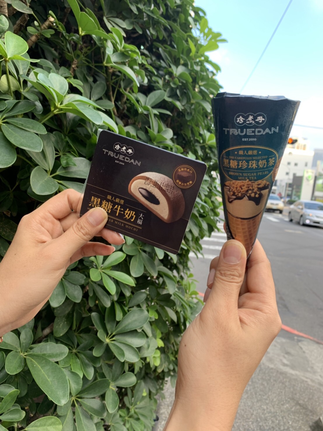 珍煮丹變成甜筒和大福啦!甜筒的茶香大於奶味,珍珠經過冰凍後還是Q彈,就像是在直接喝黑糖珍奶啊;大福的外皮融入黑糖味,包入冰淇淋內餡,非常香甜。
