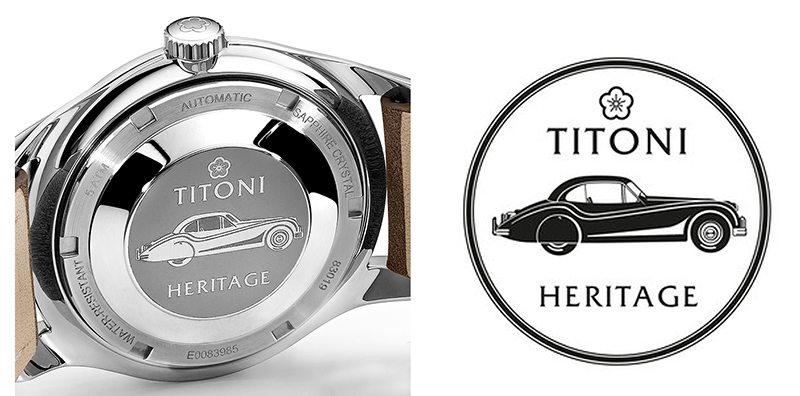 Heritage錶款背蓋頂部中央刻有瑞士梅花錶的標誌,以及一輛優雅馳騁、線條優美的老爺車。不鏽鋼底蓋上鐫刻的經典老爺車,三角弧形車窗是其特定時代的經典設計元素。在二次戰後,人們懷著對未來的憧憬,以及希望世界能經濟復甦的高昂情緒,在各行各業締造一個又一個奇蹟,開創了一個美好的奔騰年代,老爺車象徵著經典不敗,在每個世紀被流行傳頌。