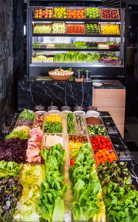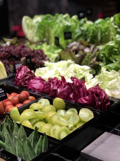 最大的亮點,就是沙拉吧的食材皆來自台灣在地小農,包含南投埔里「生菜女王」所種植的火焰生菜、屏東的梅爾檸檬等,一旁還有「微型小菜圃」,及現刨起司、蘑菇等服務。