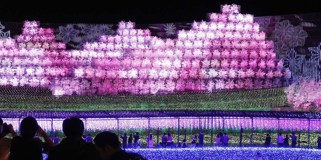 不少人到了聖誕節前後,都會前往日本賞燈景,而今年獲得日本全國5千位以上夜景鑒定師票選,從全國800所場地奪得連續三年燈光節專業組冠軍的「名花之里」,不僅年年以全國最大的壓倒性規模成為眾所矚目焦點,今年度更以絢爛櫻花為主題,透過高30公尺、寬155公尺的巨大LED牆展現絕佳的纖細美景,搭配近7分鐘的聲光演出四季變化,再加上如水彩畫般約70公尺的紫藤花藤架區、金黃色草原等精彩的畫面!