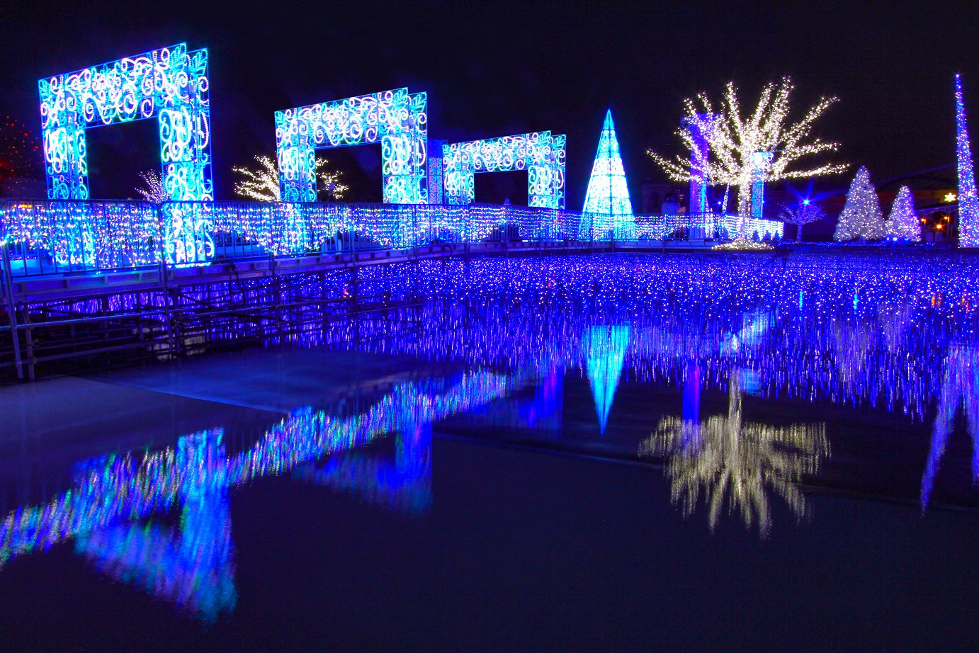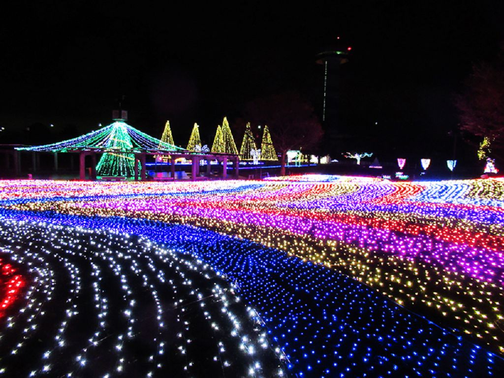 全日本最大,橫跨中部愛知、三重、岐阜共三縣的「木曾三川公園」,全園區共有13處不同花、木等自然生態景觀可免費入場。園區除了以高達138公尺展望台為主要地標,加上各季節帶來不同活動,使木曾三川公園深受當地居民愛戴之外,於每年年底,也因應溫馨歡樂的聖誕佳節披上不同色彩,透過燈光節活動與各式裝飾,為全園區帶來夜間的美幻美景。