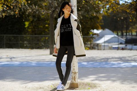 而她平時的造型風格則多是以實穿主義為主,黑色經典裝束,腳踩Adidas經典球鞋,輕鬆散發率性氣息。