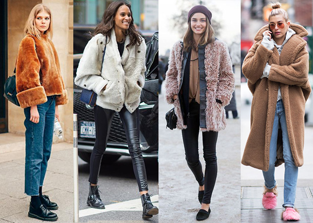怕顯胖的女孩可以選短版熊寶寶外套,加強上半身視覺份量,搭配窄下身看起來腿超細~;身材纖瘦的女孩可以大膽嘗試中長版熊寶寶外套,很有氣勢、內搭輕鬆簡單就不會搶走外套風采,重點是一路保暖到大腿,像星二代名模Hailey Baldwin(最右)選擇駝色長版,腳踩粉色毛毛拖鞋很潮!
