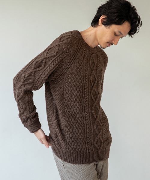 麻花針織除了與牛角釦大衣、巴爾瑪肯領大衣、丹寧外套等外套搭配毫無違和之外,與經典的軍裝亦可有很好的搭配感。