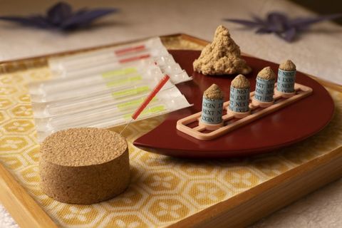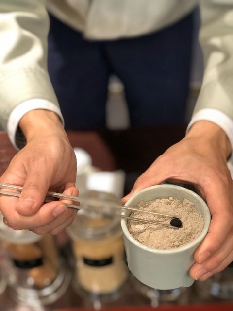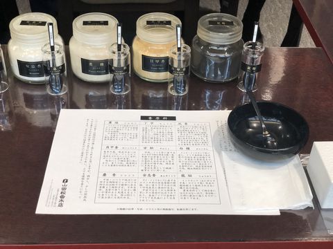 「三雅道」裡,茶道諧和、花道養心、香道靜心。香道在約莫六世紀從中國傳入日本,除了禮佛,在貴族權富之間,也流行煉製各家族獨有的香氣。百年老舖「山田松香木店」的調香體驗,課程可選擇「香袋製作」或「薰香製作」。