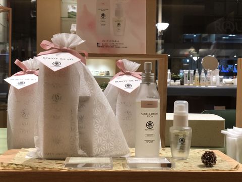 Kotoshina位在BAL的一樓,是京都在地出產的有機保養品牌,以京都宇治的有機綠茶、植物精油、法國的天然溫泉水為基底設計產品,日本計畫、法國製造,一系列非常完整。