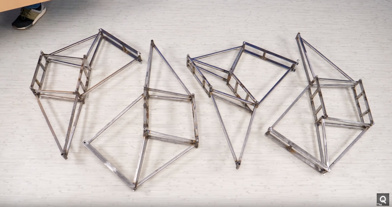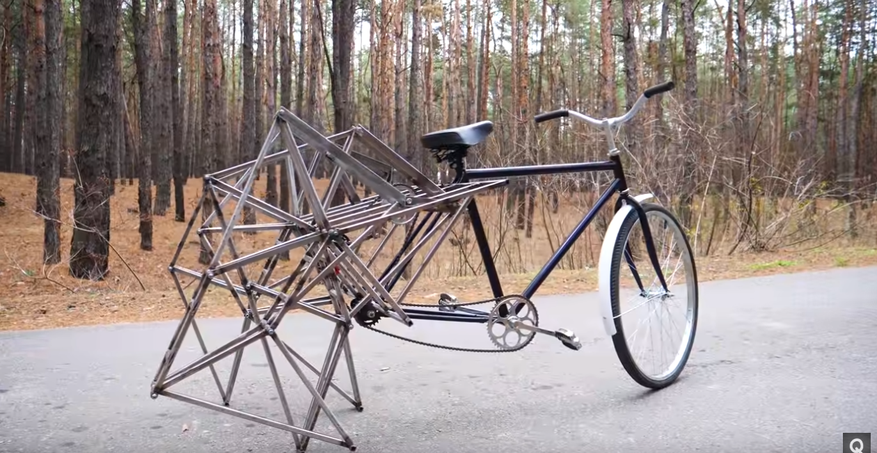 這台像是仿生獸結合自行車的手工作品,是由400多個手工部件製成,光是焊接就花了3天的時間,總共開發了7個月才完成。自行車的後輪被四隻腳完全取代,但仍然以腳和鍊條驅動前進。影片中將繁雜的製作過程都拍攝出來,果然是很需要耐心的工作。