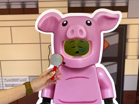 抵達第三關之後,能夠利用樂高積木組合出「搖一波浪鼓」,除此之外,在搖鼓的時候還能叫醒穿上小豬造型的沉睡樂高人偶!