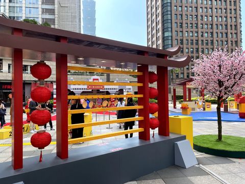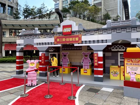 樂高此次的活動,將亞洲新年主題盒「新春廟會」三十倍放大!民眾除了能以「樂高玩偶」視角在這裡打卡之外,還能與場內穿上十二生肖動物裝扮的樂高人物合照!