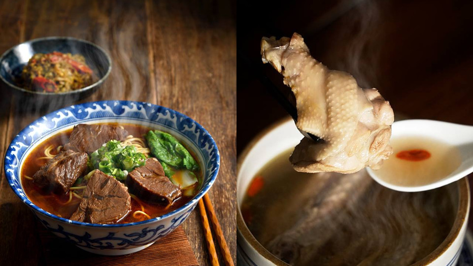 「牛肉麵.雞湯」中的牛肉麵採用了牛腱中最高等級的牛腱心,肉中帶筋,花上數小時燉至軟嫰,口感紮實而多汁;湯頭歷經24小時的熬煮,成就了一碗口感濃馥、富含層次香氣的獨特湯頭。