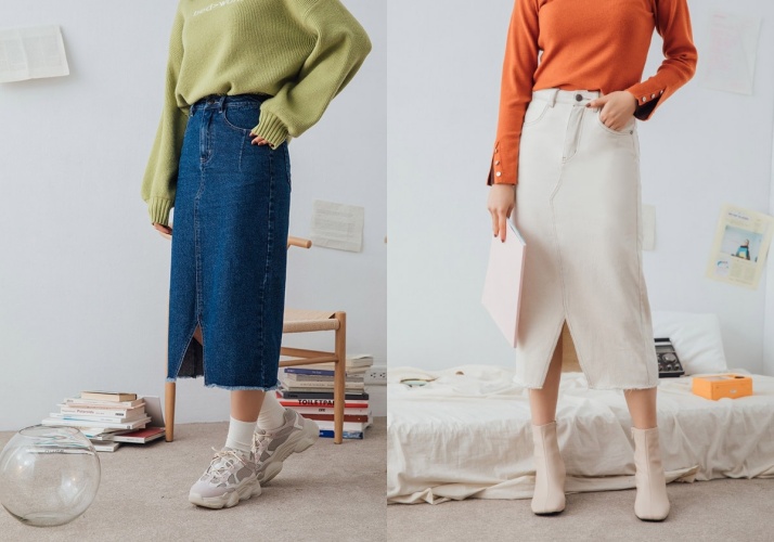 對於矮個子女孩,高腰就是挽救身高的不敗穿搭,品牌運用中高腰裙款做搭配,並且以 7-8 分的長度做剪裁,加上下襬的小開岔設計,讓妳透過高腰線拉長腿部外,也因為露出小腿及腳踝的關係,讓腿部有無限延長的效果。
