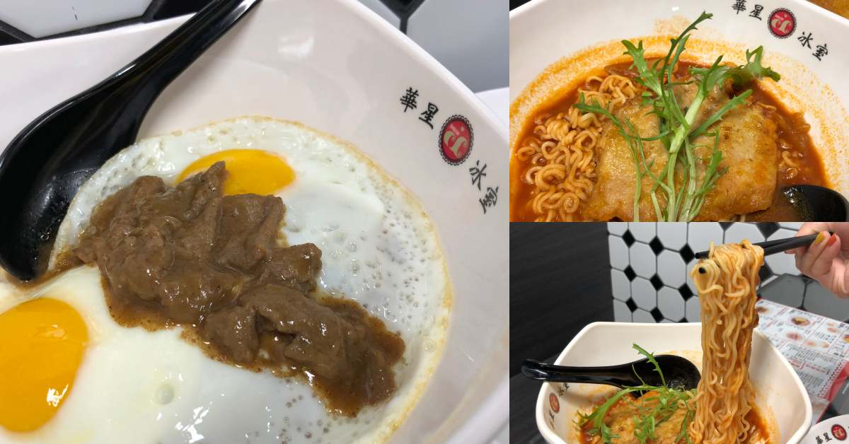 前面說到歌王陳奕迅是《華星冰室》的鐵粉,到此一定會點上一碗(右圖)重口味一丁 $208,以濃郁的番茄湯為基底,將蕃茄費時又費工的長時間熬煮,把新鮮的蕃茄煮到猶如勾芡一樣的濃稠,看似簡單一碗麵獨特香氣總讓人難以忘懷!(左圖)出前一丁 沙嗲牛肉 $208 使用香港招牌的《出前一丁》拉麵,再放上半熟蛋以及沙嗲牛肉,平凡的一道家常菜瞬間升級!美味的沙嗲牛肉香濃的醬汁口感軟嫩香氣四溢!