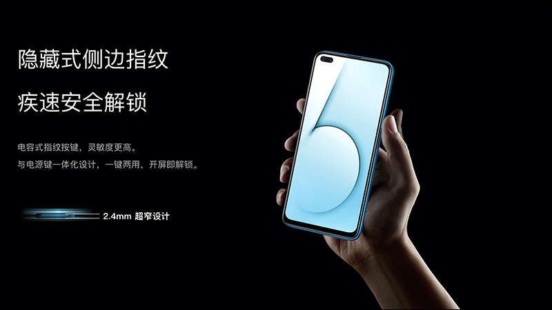 realme X50 在機身側邊配備結合電源鍵的電容式指紋辨識,能在短時間完成安全解鎖: