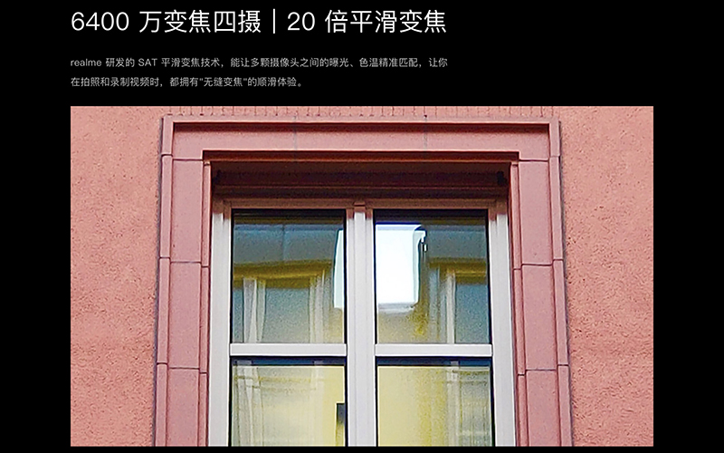 透過 realme 研發的 SAT 平滑變焦技術,能讓多顆鏡頭間的曝光、色溫精準搭配,能有無縫變焦的順滑體驗,最高支援 20 倍混合變焦: