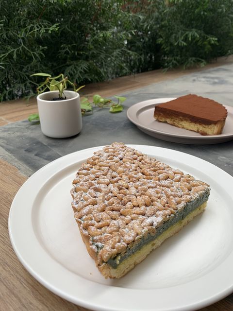 滿滿一層松子與抹茶交融,是散發出日系口味的法式甜派!茶香與巧克力的香濃一同在口中化開,松子的顆粒讓口感層次更上層樓!