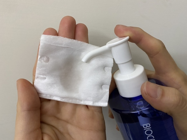 或是透過化妝棉也可以,卸妝液帶著淡淡的香味,無須經過乳化且完全不油膩