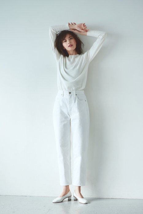 想要有讓人煥然一新的效果,可以選擇全白色的穿搭風格,白色的毛衣相信是女生們家中必備的單品,而很多女生都會擔心白色長褲會讓你雙腿顯胖,但只要把上衣束進褲內,雙腿的比例馬上會變得很好呢!