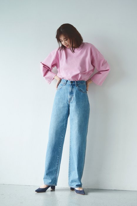 如果是窄身牛仔褲的話,上衣要選鬆身款,,這樣比例上看起來,下半身非常顯瘦。而且最好是上身淺色,下身深色,這樣就更能做成視覺上的錯覺,顯得雙腳更修長。