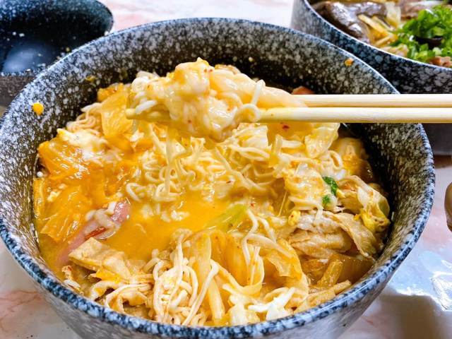 泡菜的辣味因為乳酪的香鹹而變得溫和順口許多,湯頭辣中帶些酸甜,豐富多層次的口感和滿滿的料,非常好吃CP值超高,大推薦~~~