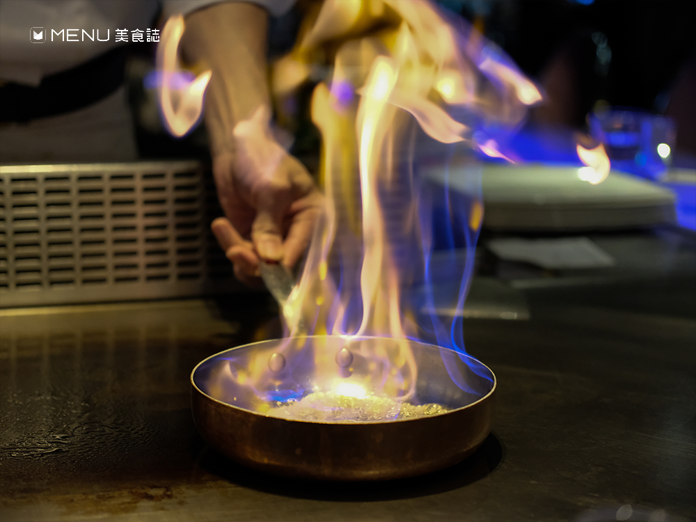火真的非常大!服務生會提醒顧客不要靠鐵板太近!最後會再用剩下的鴨油跟酒香做成醬汁。