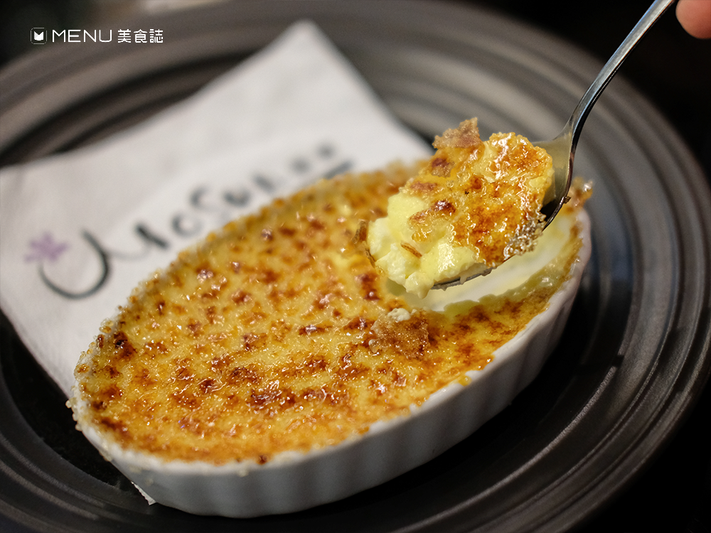 布蕾的份量很大,布蕾上方使用砂糖炙燒形成焦糖狀的表面,吃起來甜滋滋的!