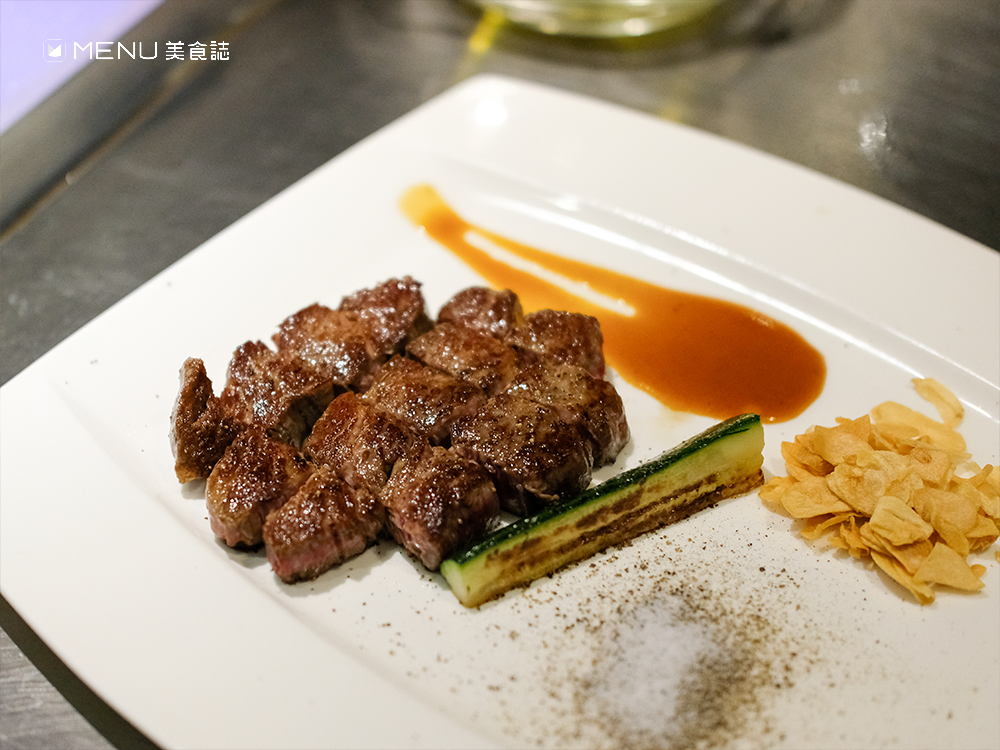 盤面上的是紅酒牛排醬與解膩的節瓜,還有些許蒜片。