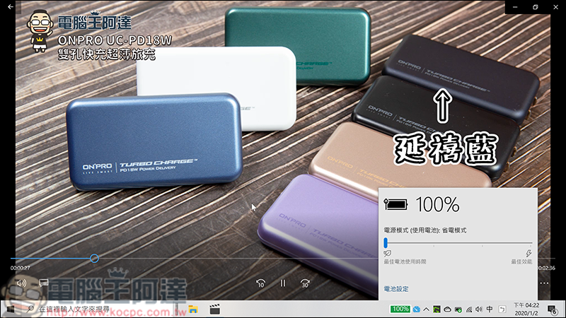 以1080P MP4的影片作連續播放測試,從滿電的狀態下測到10%電力,有將近快10小時的續航 :