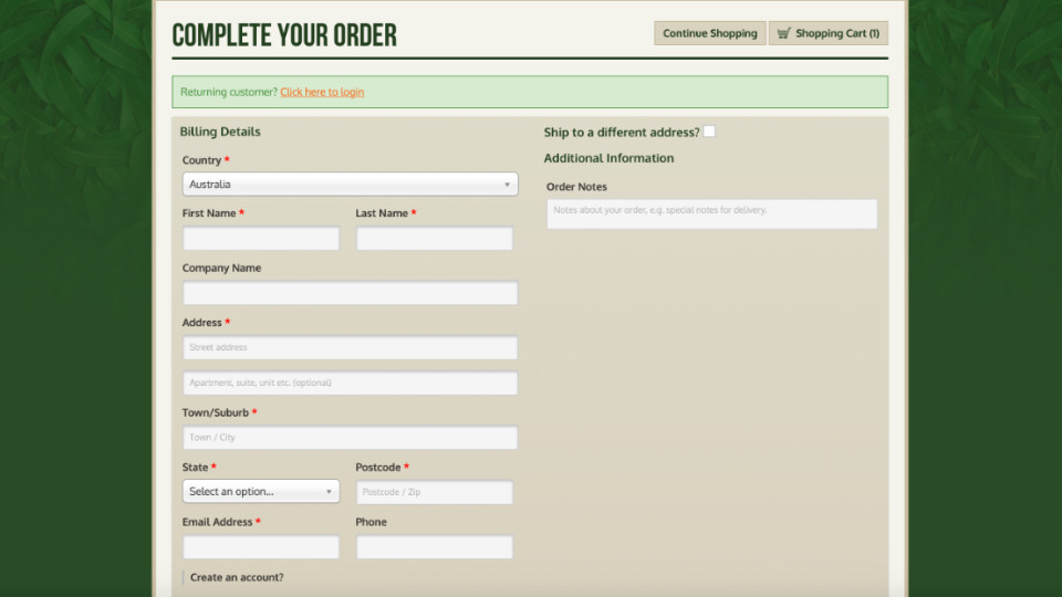 無尾熊助養計劃步驟5:按照表格完成資料填寫,按下「Place Order」