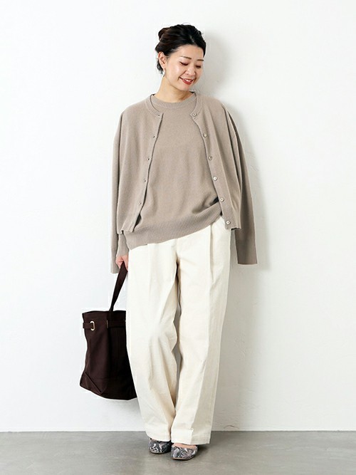 百搭實穿的米白色燈芯絨長褲,不僅能使整體帶來舒適暖感的視覺感受,以素 Tee 或衛衣混合,再利用同色系漸層的搭配方式,同時創造純粹自然的清新風格,隨性加上帆布鞋就能輕鬆為整體感加分。