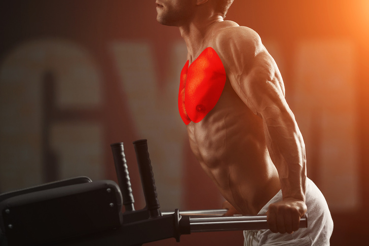 如何做:手臂支撐於雙槓上,雙腿彎曲,膝蓋呈90度。身體前傾時,手肘向外,肩胛骨內收,訓練重點是下胸肌;身體垂直時,手肘內收,訓練重點是三頭肌。