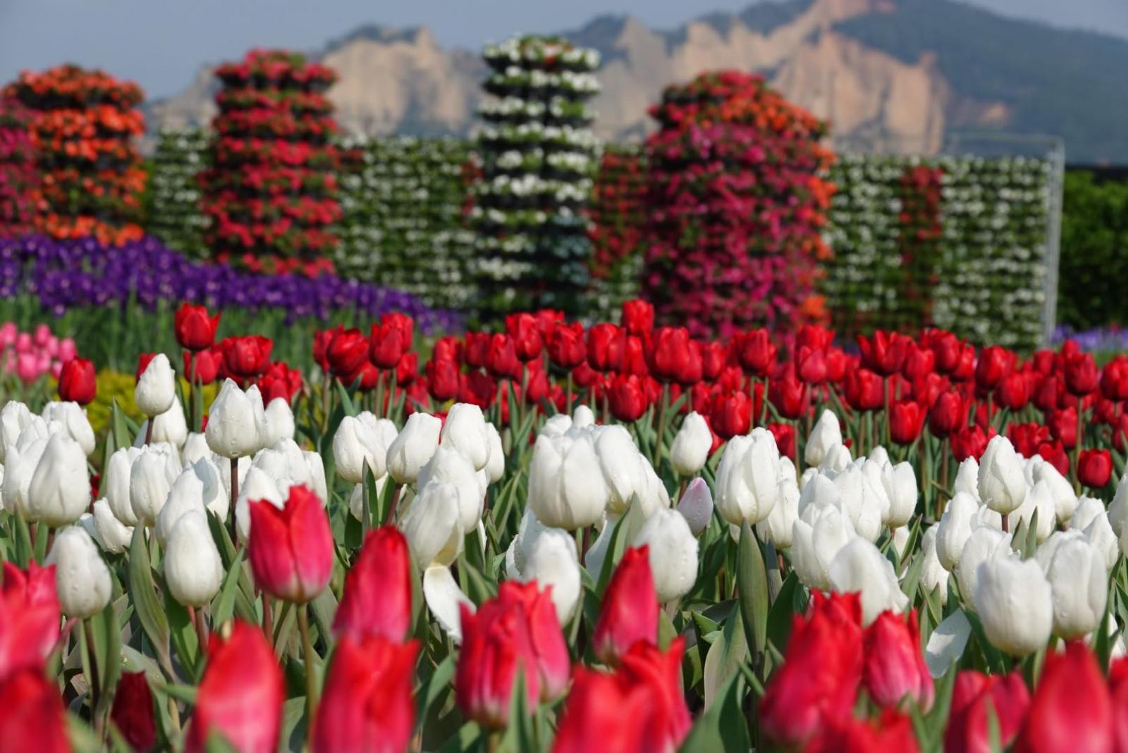 除了鬱金香,園區內也種植8公頃的百合花、一串紅、萬壽菊、鼠尾草、玫瑰花、毛地黃、大飛燕等迷人花卉,營造出最值得一遊的夢幻花園。喜歡的人也可以到盆栽區選購花苗、花器,在居家環境中打造出美好風景。