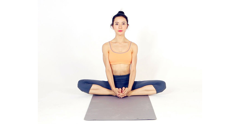 雙手食指抱住雙腳讓腳心相對,緩慢呼吸讓身體保持平衡,妳的膝蓋可能會一高一低,但請盡量相同喔~