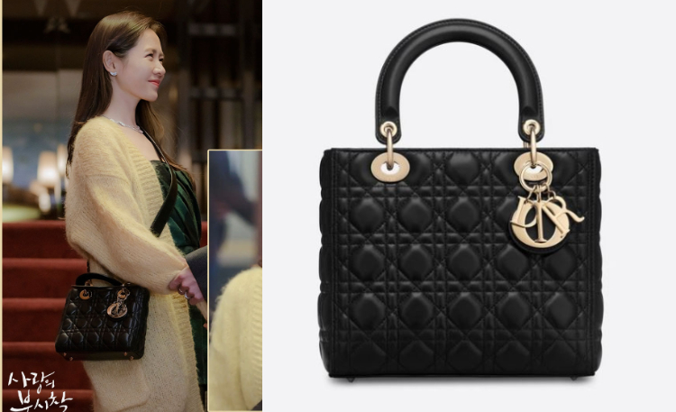 優雅著稱的Lady Dior以藤格紋Cannage縫線搭配造型圓潤的把手和Dior金屬吊飾,不只能妝點出千金範,也可以像孫藝珍一樣搭配寬背帶使用,營造出不同以往的率性格調,是許多女孩夢寐以求的爆款包之一。