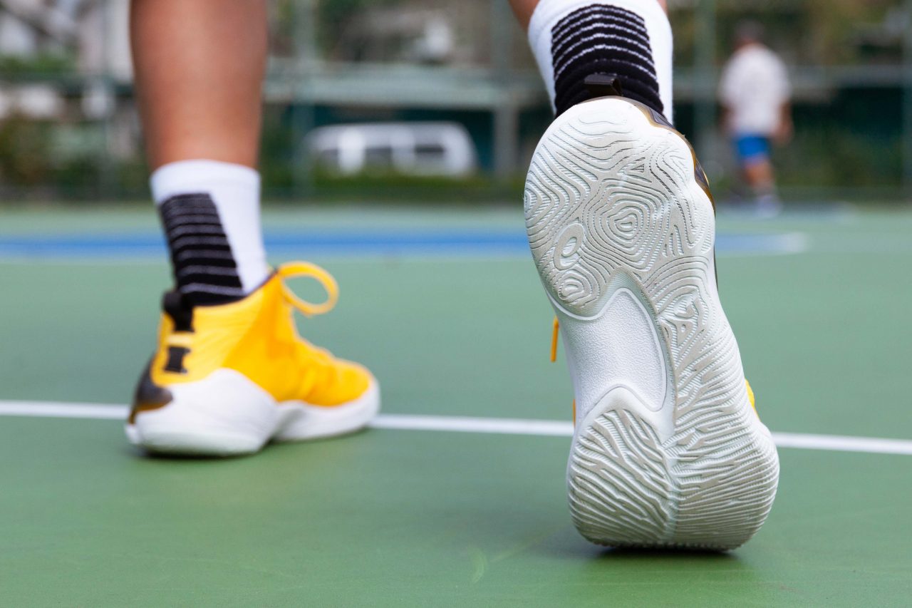 NOVA SURGE 由 Flytefoam Propel 為主體,後方外側配有 GEL 避震凝膠加強落地瞬間的保護,對於 Flytefoam 中底體系編輯從跑鞋一路穿到籃球鞋並不陌生,2018 年我測過的 GELHOOP V 10 亦是 Flytefoam 科技主導,兩雙給我印象都屬於側重避震保護、穩定著陸的路線,這也決定了 NOVA SURGE 之個性。中底避震行程短但不死硬,吸收衝擊力的部份完全無須擔心,實戰中、運動完隔天腳底板跟膝蓋沒有抗議是最好證明,但就我個人感覺反饋稍嫌薄弱,這點除了材質本身並非以強大彈性聞名,編輯體型、爆發力都不是非常出色可能也是原因之一,測試期間曾有借給兩位腿力比我好上許多的球友穿,中底韌度及回饋獲得他們一致好評,還就此開始對 ASICS 籃球鞋感興趣打算入手試試;若爆發力、體型有相當程度的球員來駕馭 NOVA SURGE 相信能更能完整體會到其戰力。