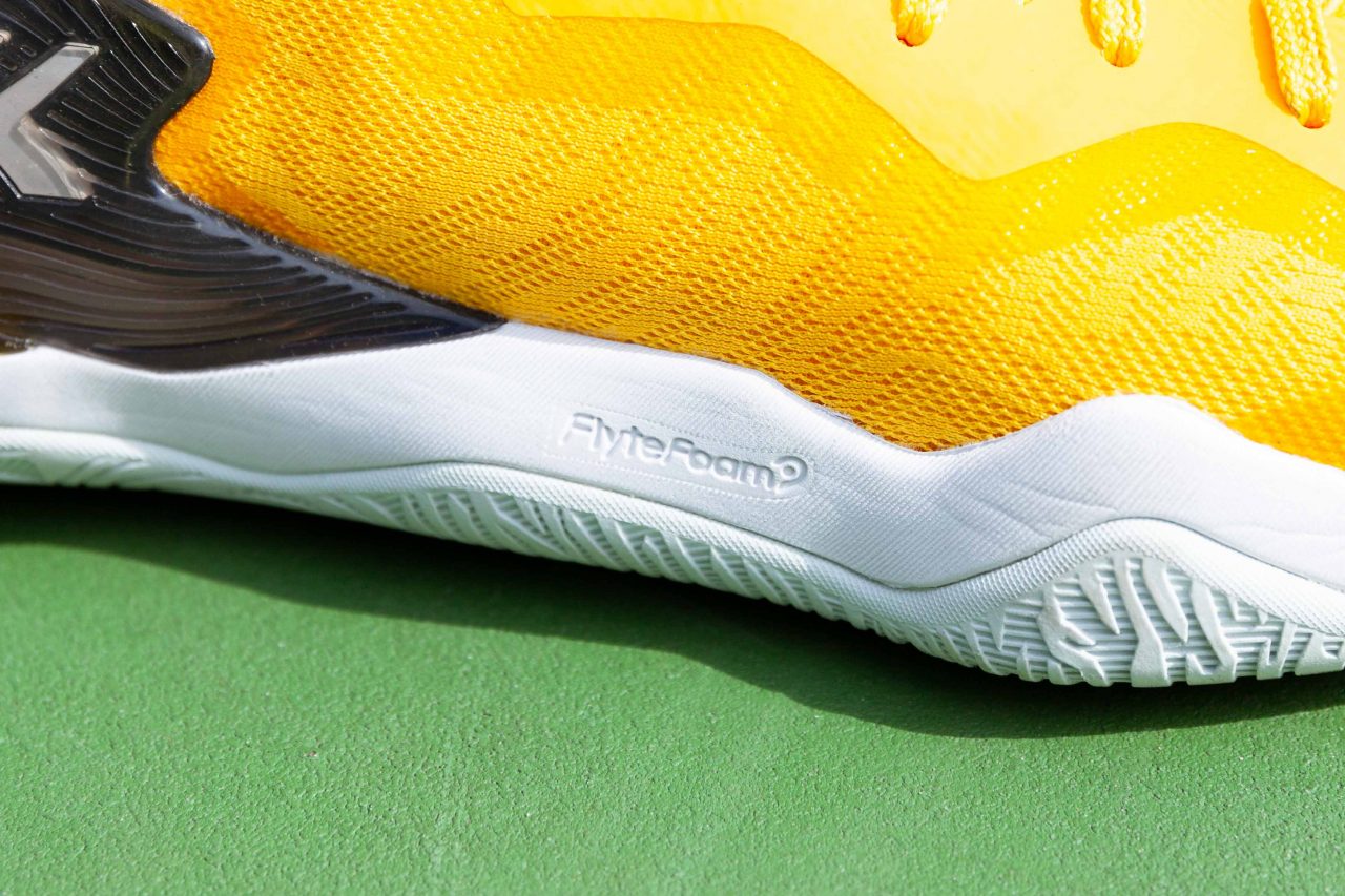 拜鞋身側面材質夠強韌所賜,橫向移動靜止瞬間可以看到 NOVA SURGE 鞋面形變幅度不大,同時 ASICS 將外底延伸擴張出一道有力支點,配合出色止滑表現來化解掉橫向力量。最讓我有記憶點的是全場 5 打 5 當攻防轉換產生,往往需要一個煞車然後急速往反方向啟動,NOVA SURGE 總是能夠抵擋住我瞬間往外側踩去的力道,眨眼間停下然後沉住重心,即刻往另一方向啟動加速奔去。