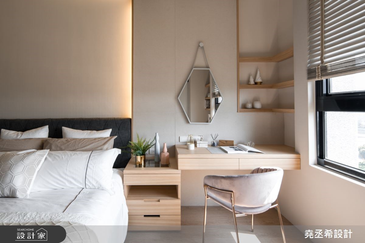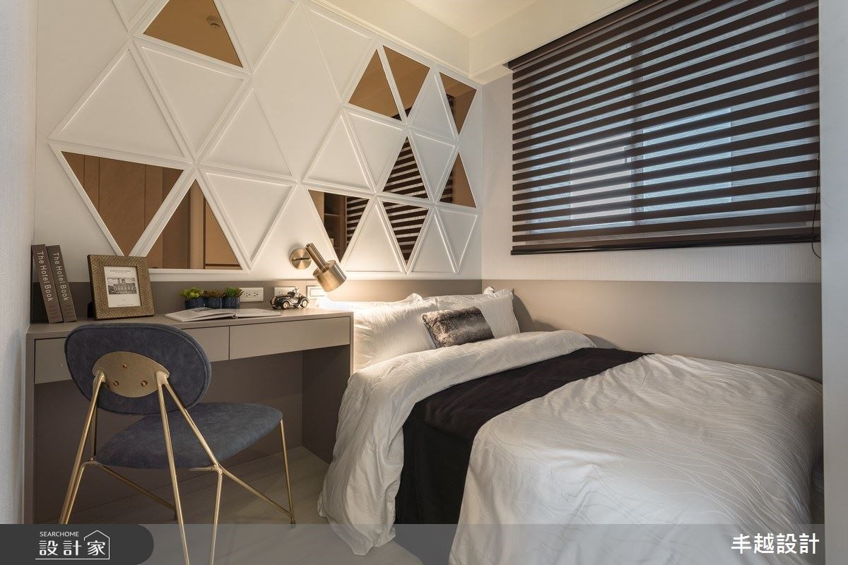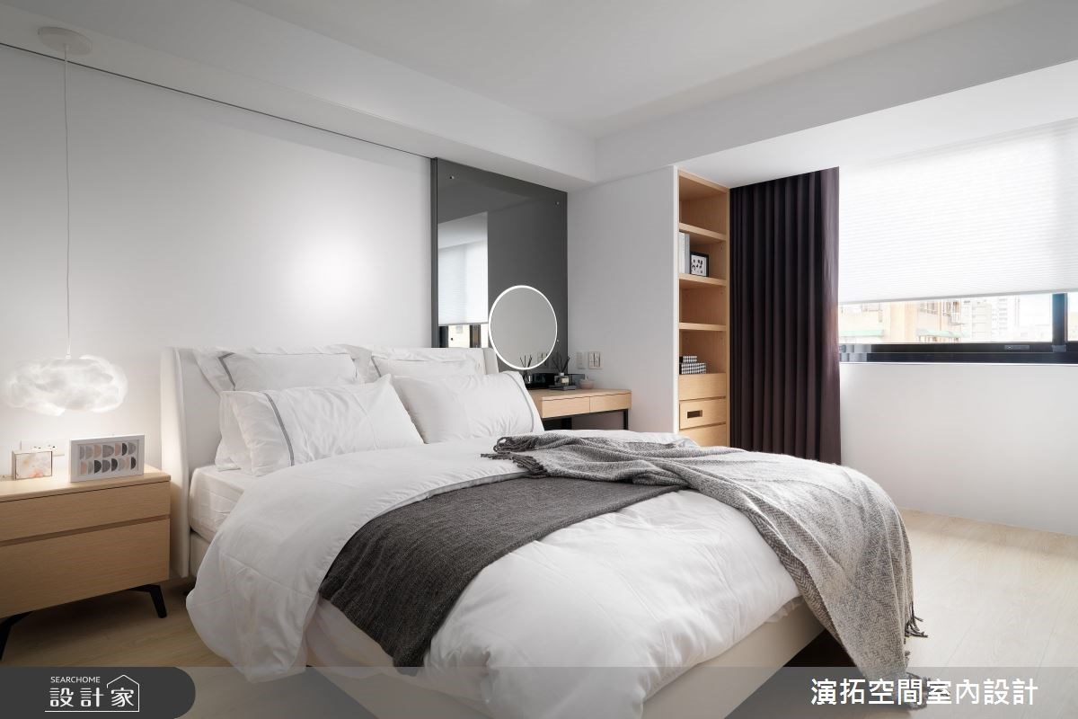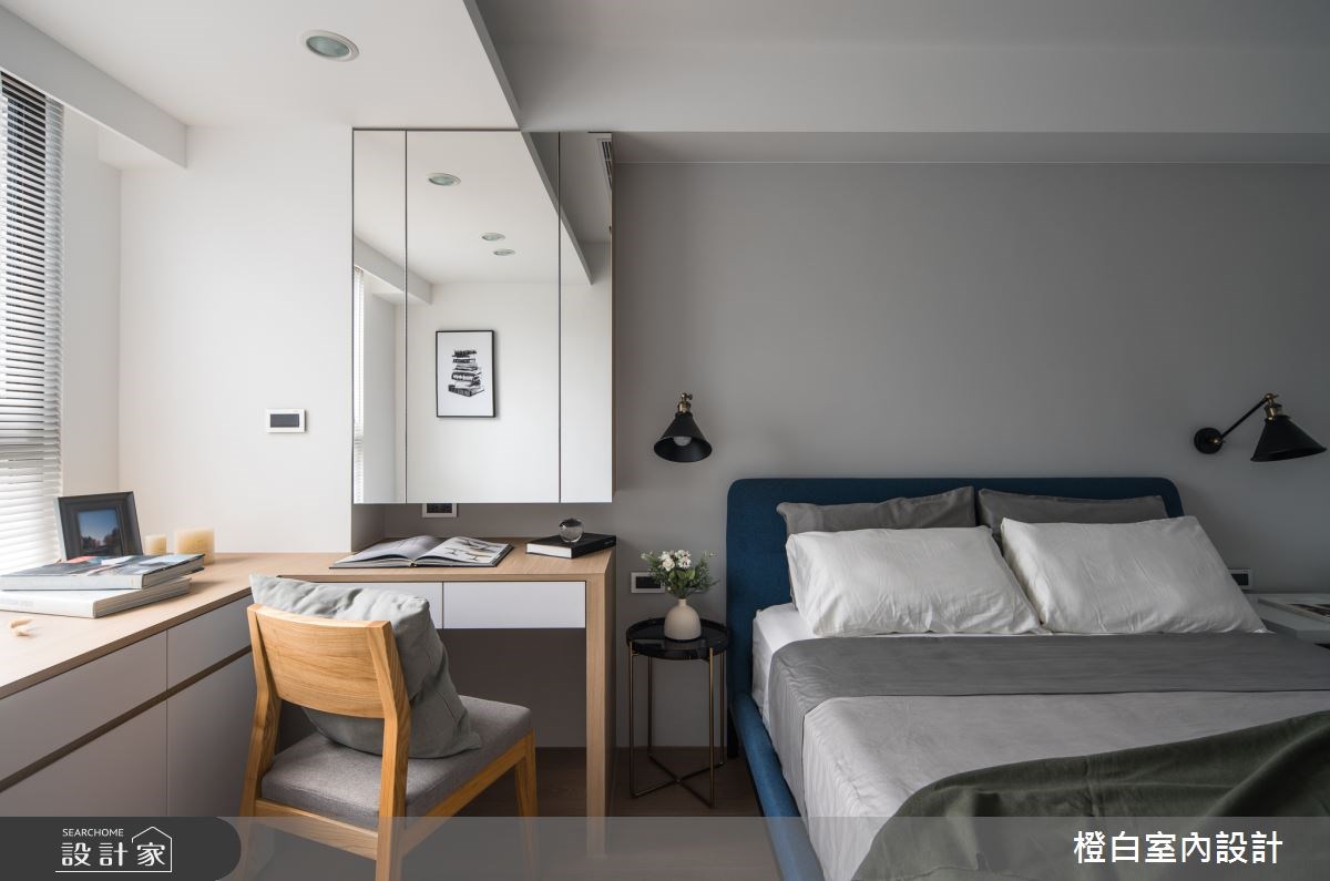 另外,穿衣鏡在臥室已經是必要存在,有鑲嵌於衣櫃內的滑軌式穿衣鏡,照起來體態又高又瘦的獨立穿衣鏡(全身鏡),還有近年來十分流行於臥室打造的獨立更衣間,鏡子都是臥室不可或缺的要角。臥室內的大面鏡子能放大空間,造型鏡面能裝飾牆面、隱藏門片;那些帶有反射特性的材質,也能替五坪內的臥室帶來輕透感。