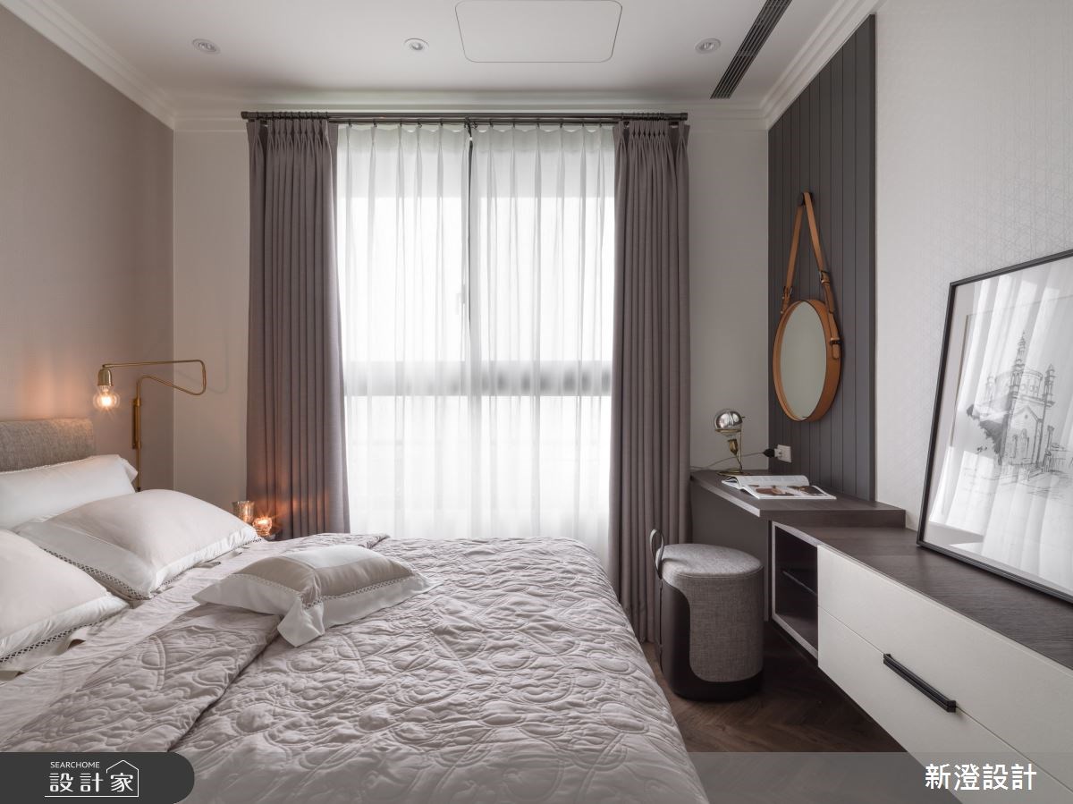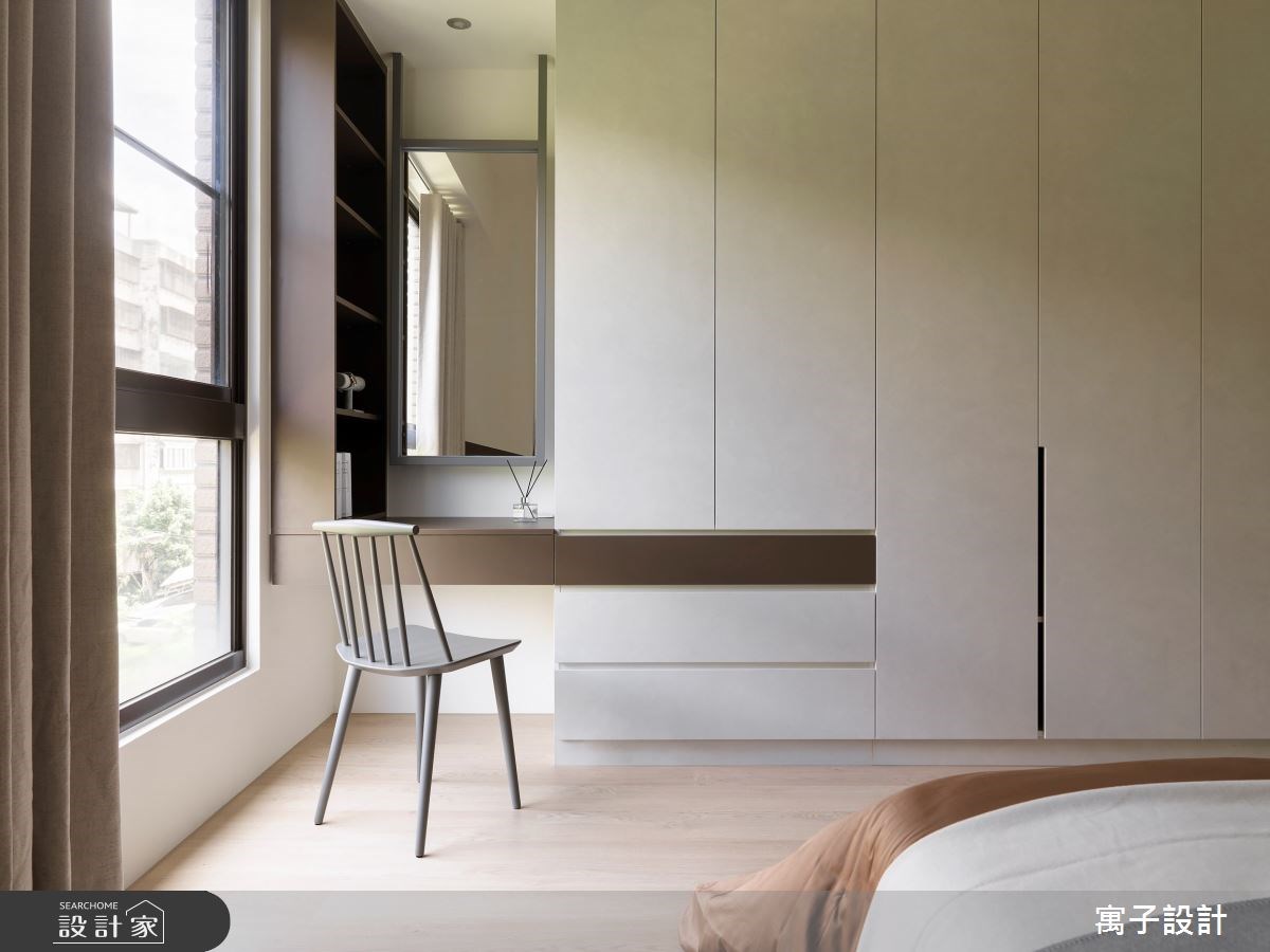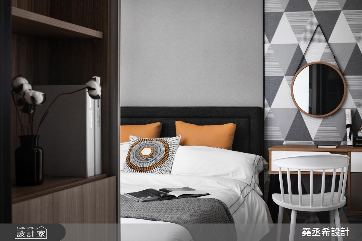 另外,穿衣鏡在臥室已經是必要存在,有鑲嵌於衣櫃內的滑軌式穿衣鏡,照起來體態又高又瘦的獨立穿衣鏡(全身鏡),還有近年來十分流行於臥室打造的獨立更衣間,鏡子都是臥室不可或缺的要角。臥室內的大面鏡子能放大空間,造型鏡面能裝飾牆面、隱藏門片;那些帶有反射特性的材質,也能替五坪內的臥室帶來輕透感。