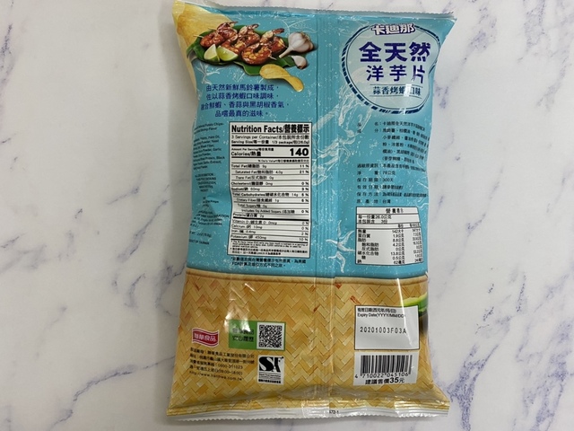 香濃蒜香烤蝦香味的馬鞍形的洋芋片,香香脆脆的口感令人一吃就停不下來