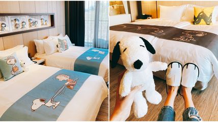 台灣超可愛「史努比主題」名人堂花園大飯店開幕啦!附贈早餐、超萌裝潢,備品拖鞋礦泉水通都有Snoopy身影