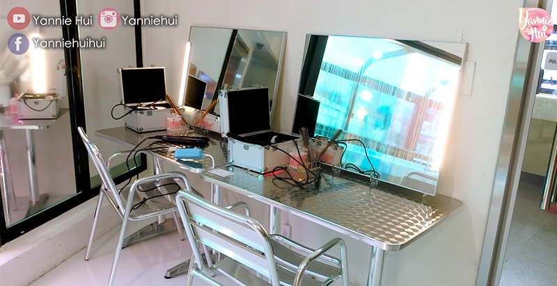 選好校服之後,便可以前往更衣室換衣,他們的更衣室也超美,是有經過設計的那種,現場也有提供置物櫃放你的個人物品。雖然沒有化妝或是髮型服務,但有自助造型區,提供吹風機、髮捲和離子夾做最後的整理~可以說非常貼心~