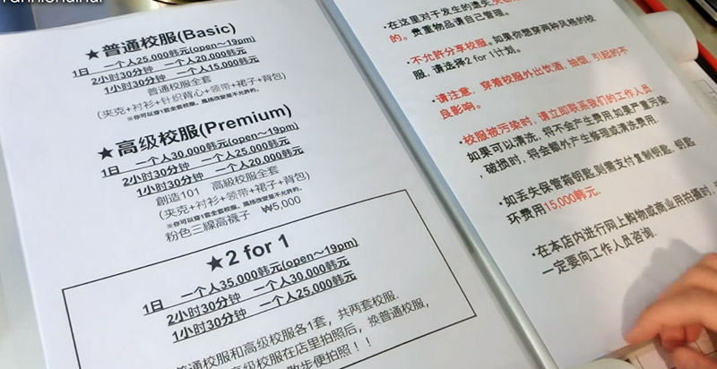 今年三月才剛開幕的NUGUNA校服體驗地理位置超級便利,就位在韓國首爾弘大入口站8號出口(地址:首爾麻浦區臥牛山35路55jinyuwon大樓5層),雖然沒有明顯招牌,但櫥窗內一字排開的制服,一看就知道~營業時間am11:00~pm8:00,要特別注意最後租借時間是晚上7點喔,千萬別超過時間來租美美的制服來不及拍照!