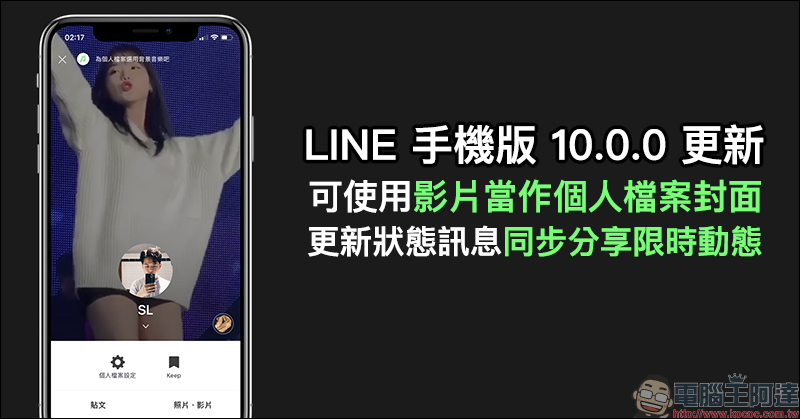 LINE 手機版 10.0.0 更新:可使用影片當作個人檔案封面、更新狀態訊息同步分享限時動態