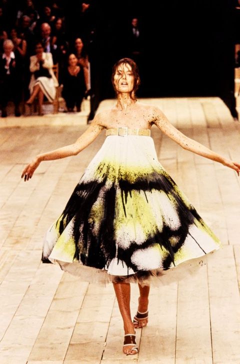超模Gisele Bündchen出道早期,曾為Alexander McQueen 1998春夏系列走秀,這位形象陽光健康的超模會踏上McQueen伸展台,是因為她可以在以「Rain!」為主題,濕漉漉的秀場上依然穿著高跟鞋走秀。