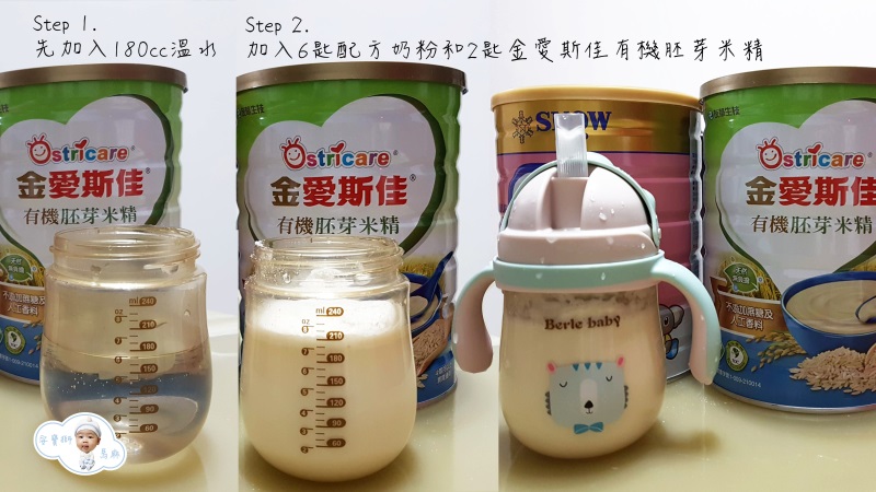 另外,有機胚芽米精還有一種吃法就是一開始文章有提到,為了讓寶寶更有飽足感,每天安寶獅睡覺前都會喝180cc的配方奶,這時候就會在配方奶裡面再加2湯匙的米精,如果要加3到4湯匙的也可以,依寶寶可以適應的口感為主。比較要注意的是,因為是用水壺喝,如果加的太多會太濃稠不好吸允,影響口感時寶寶就不喝了,所以比例要拿捏好。