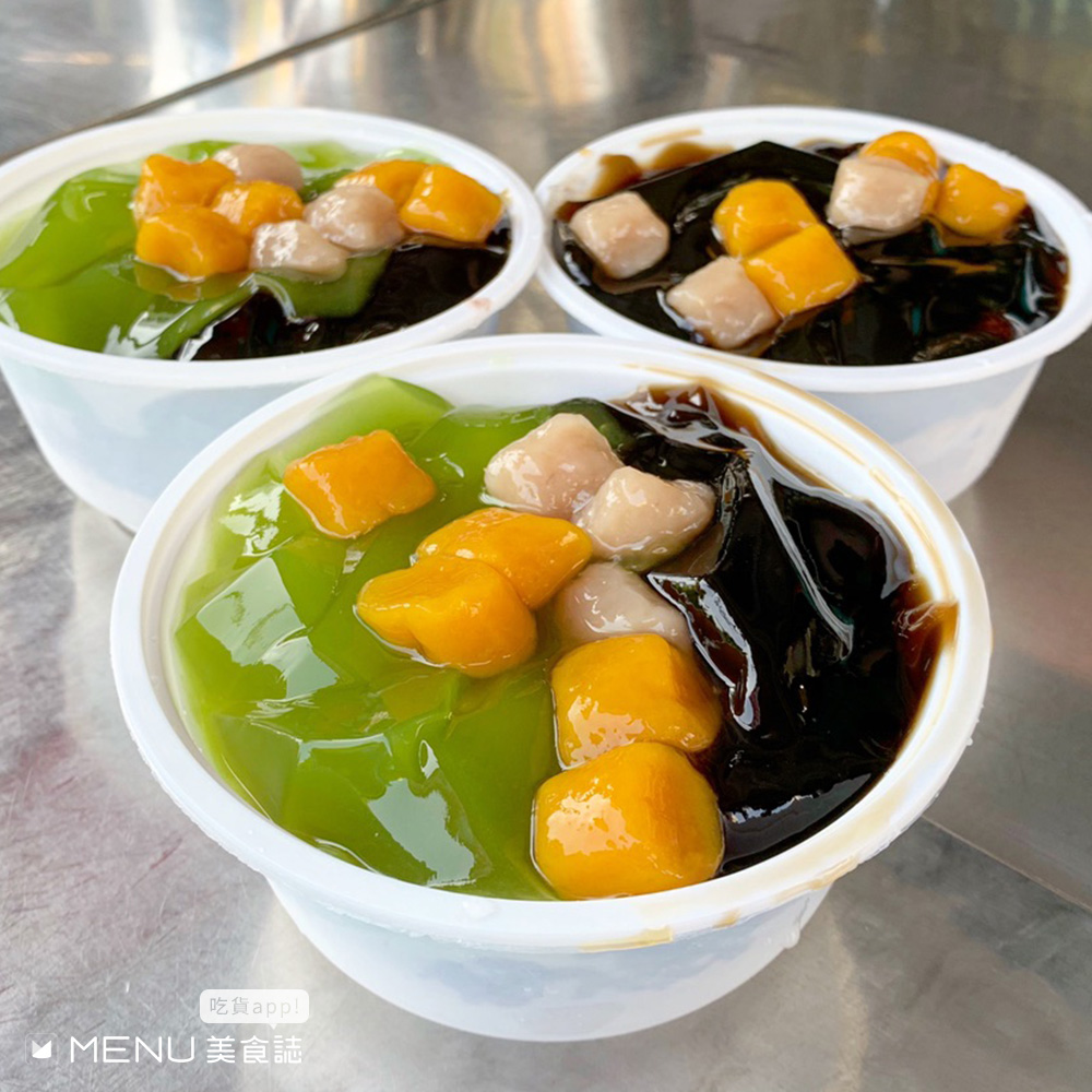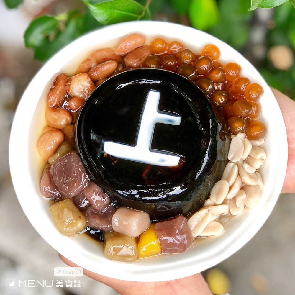 位在知名的張豐盛商行對面,中間有著「上」字的仙草凍,淋上奶球,吃起來滑嫩順口,配上芋圓、珍珠、花生、大紅豆四種配料還有底層的小碎冰,清爽不甜膩,夏天吃一碗超級消暑的啊!