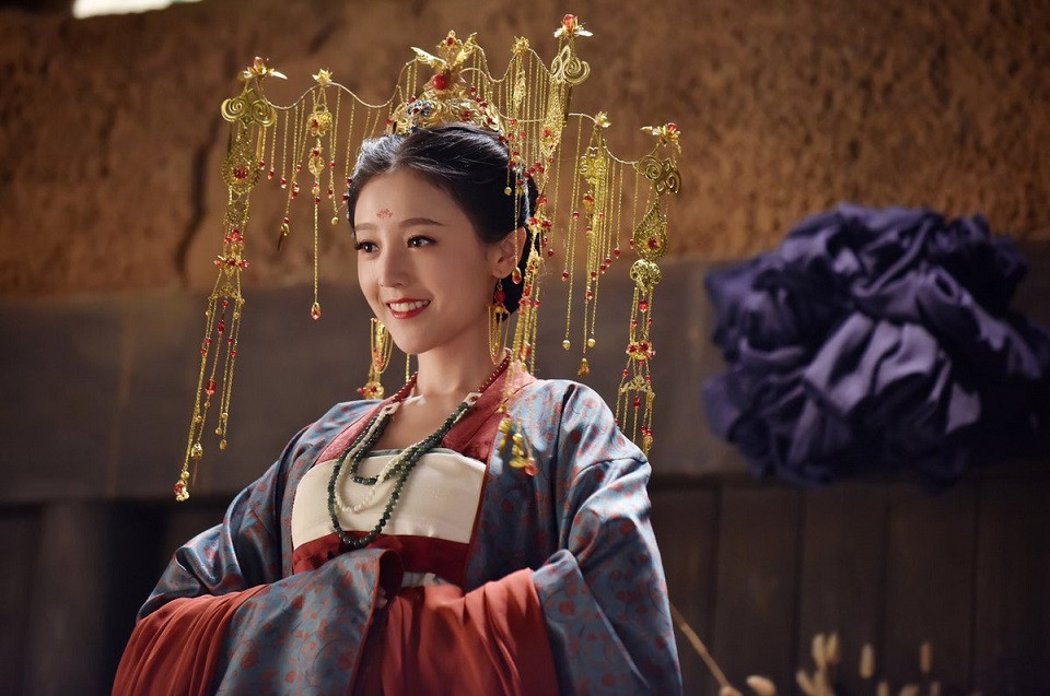 而迪麗熱巴在《班淑傳奇》飾演樓蘭公主,同樣戴上異域風情的頭飾,即時誇張的頭飾在她身上好像也很合理。在《風中奇緣》也是演西域美女。